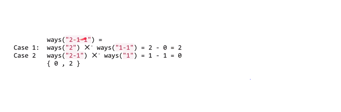 "2-1-1"Output:[0, 2]Explanation: ((2-1)-1) = 0 (2-(1-1)) = 2
