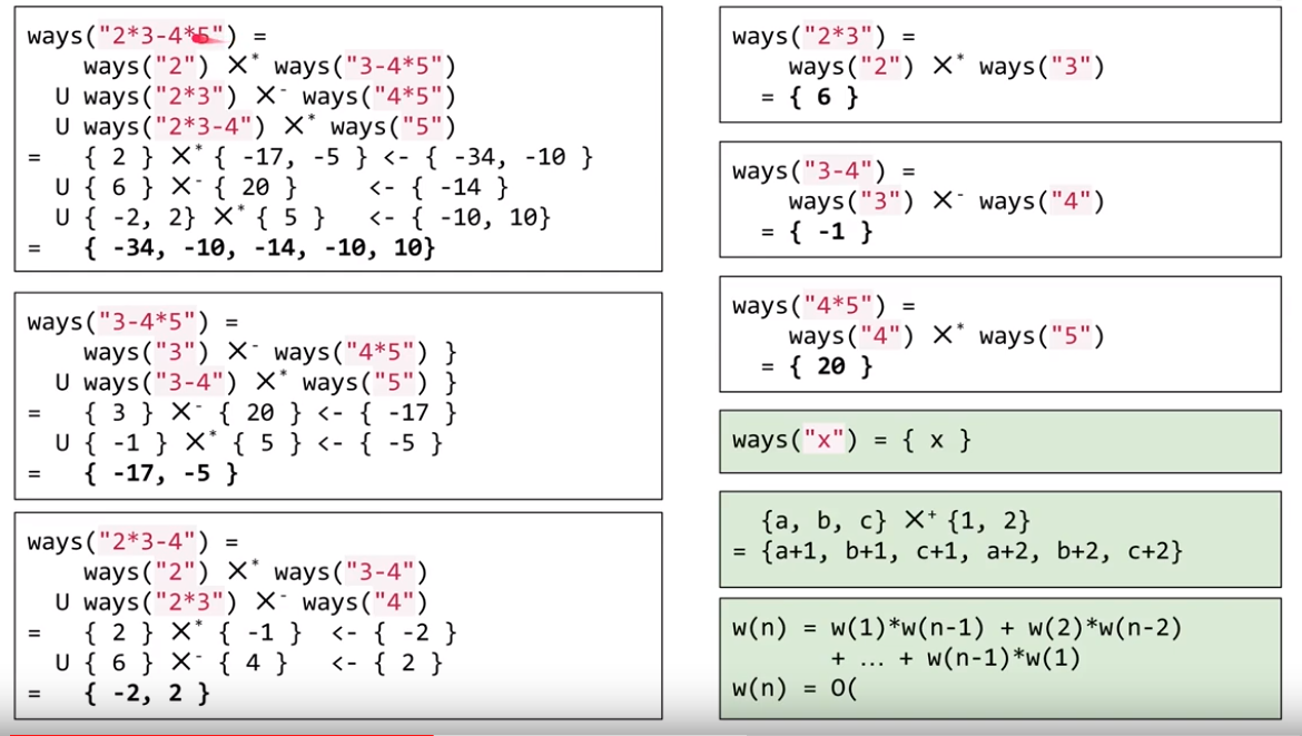 寻找一个位置,对表达式进行分割,要求分割的位置是在各个操作符的地方。下面的图片来自于博客:花花酱 LeetCode 241. Different Ways to Add Parentheses