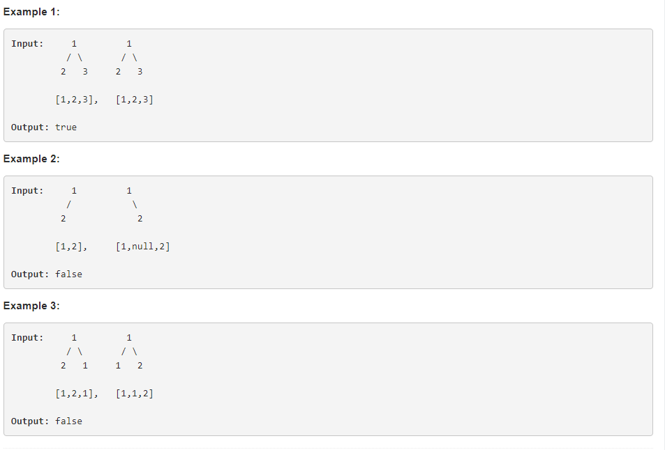 Two binary trees are considered the same if they are structurally identical and the nodes have the same value.