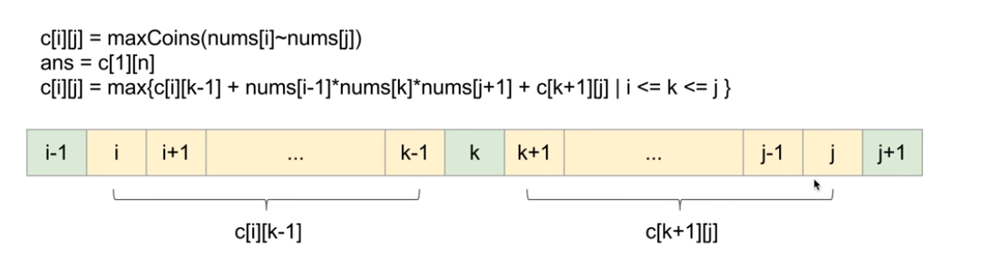 c[i][j] = max(c[i][j], c[i][k - 1] + c[k + 1][j] + nums[i - 1] * nums[k] * nums[j + 1]);