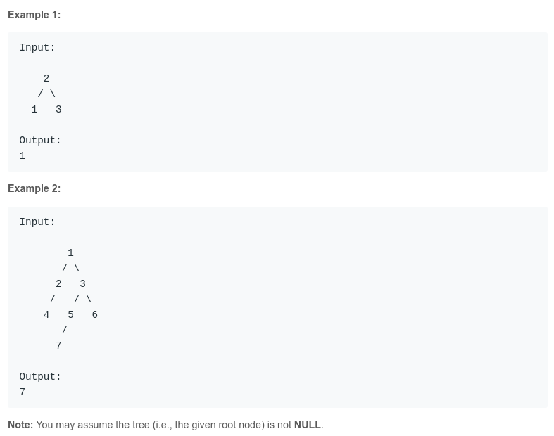 // Find the bootton left tree valur(not the left node)