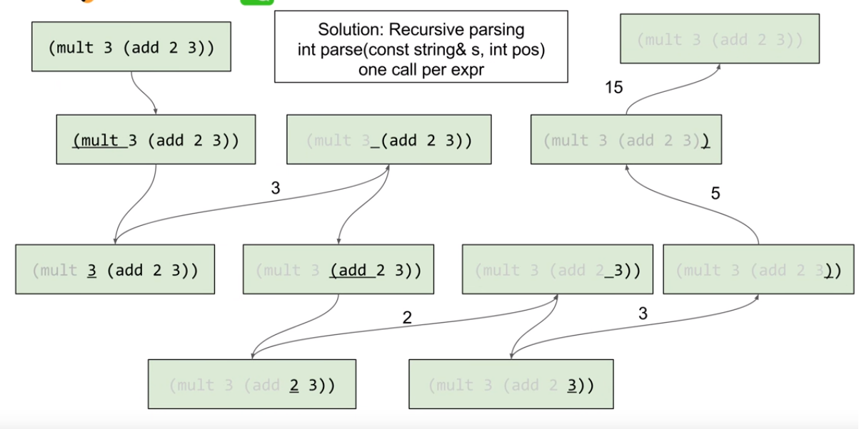 int v1 = eval(exp, ++pos), v2 = eval(exp, ++pos);