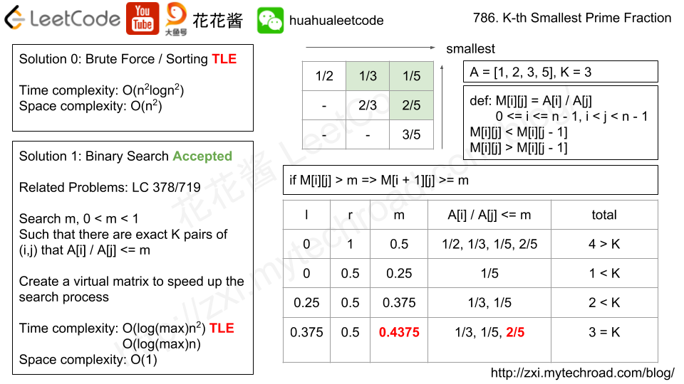 Leetcode 786. K th Smallest Prime Fraction