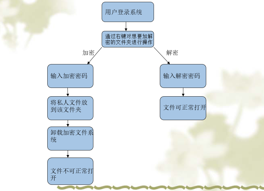 系统的主体功能是通过堆叠式文件系统来实现本地数据的加解密工作,具体需要实现的有: