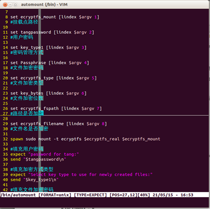 如何书写与文件系统运行时候的交互式脚本,实现加密文件系统的自动化挂载过程。