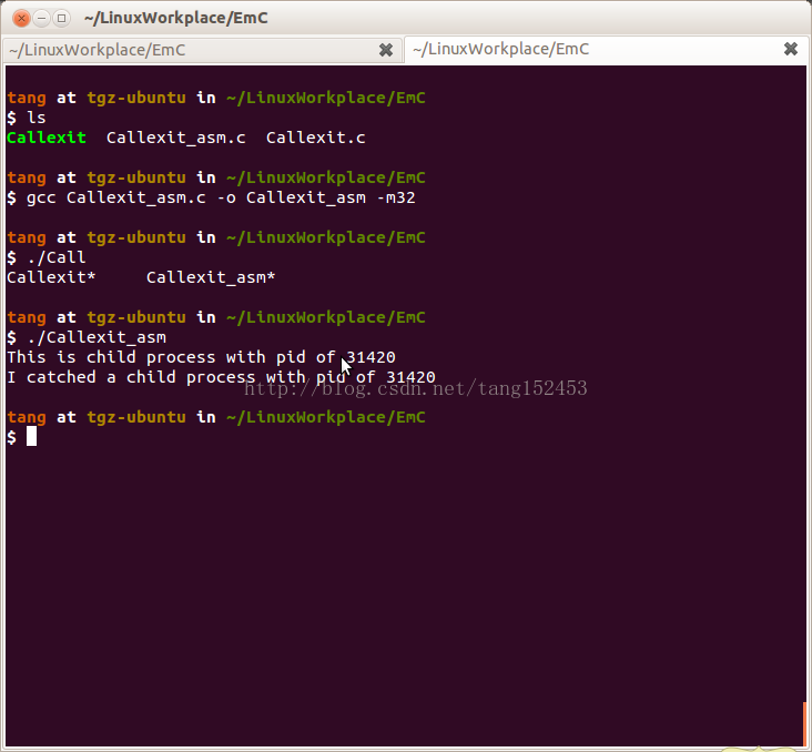 进程的退出,调用系统调用exit()就可完成,在这里exit写出汇编的形式,查询系统调用表,可知exit的系统调用号为1;使用汇编代码来书写exit系统调用如下: